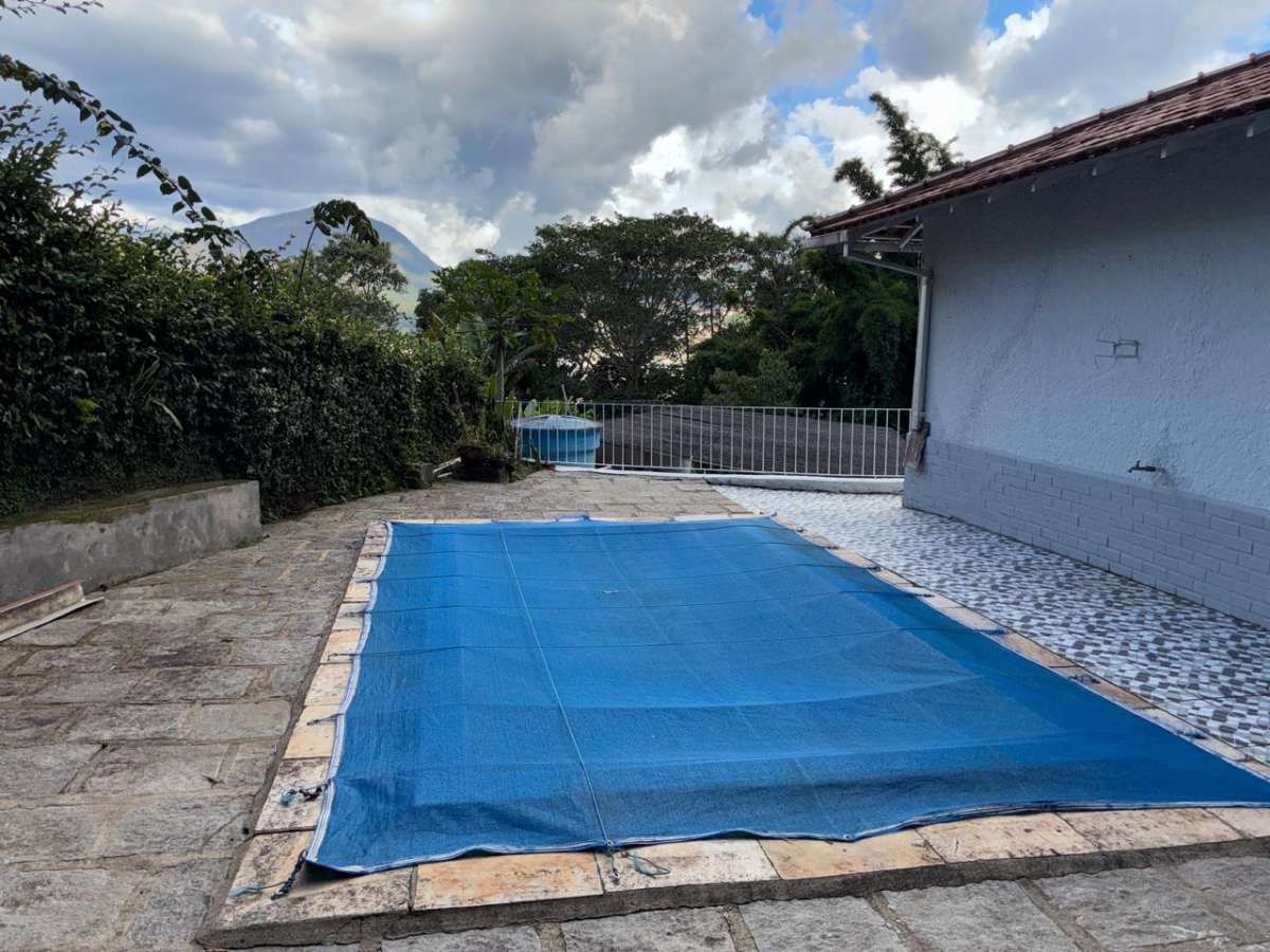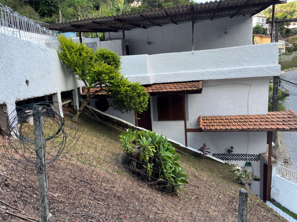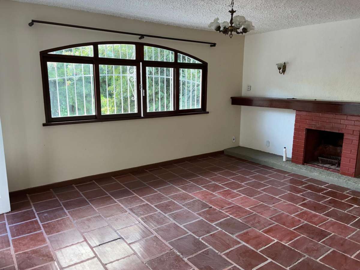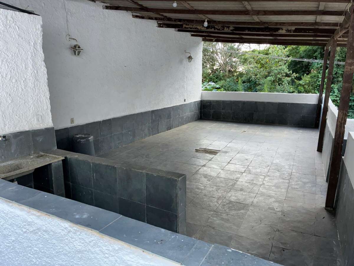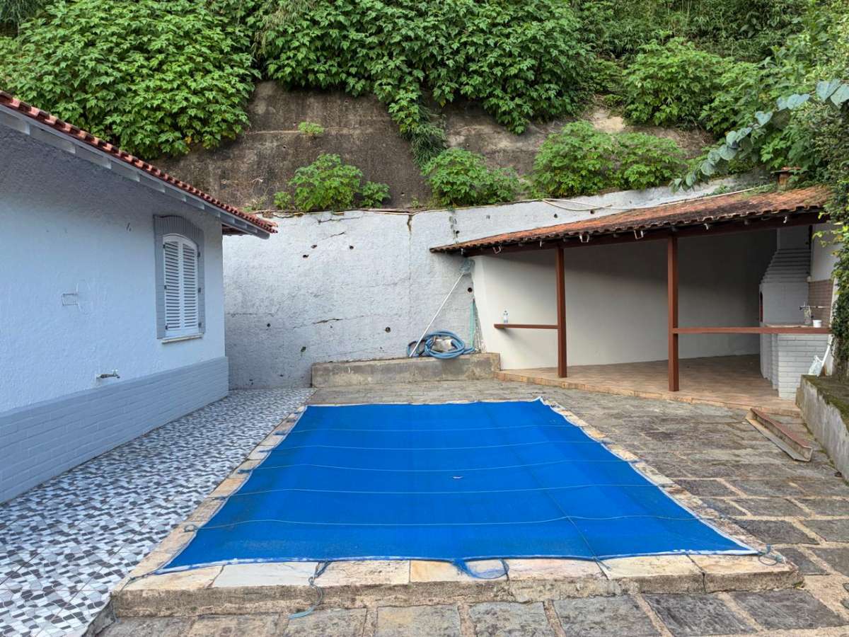 Casa Linear com terreno em aclive, ESCADA ACESSO A CASA, jardins, com casa anexa de sala e quarto, ampla area aberta com piscina e espaço de churrasqueira, area coberta para salão de jogos ou area livre, sala, copa-cozinha, 4 quartos(suíte) banheiro social, área serviço, garagem. Toda clara, arejada e silenciosa.