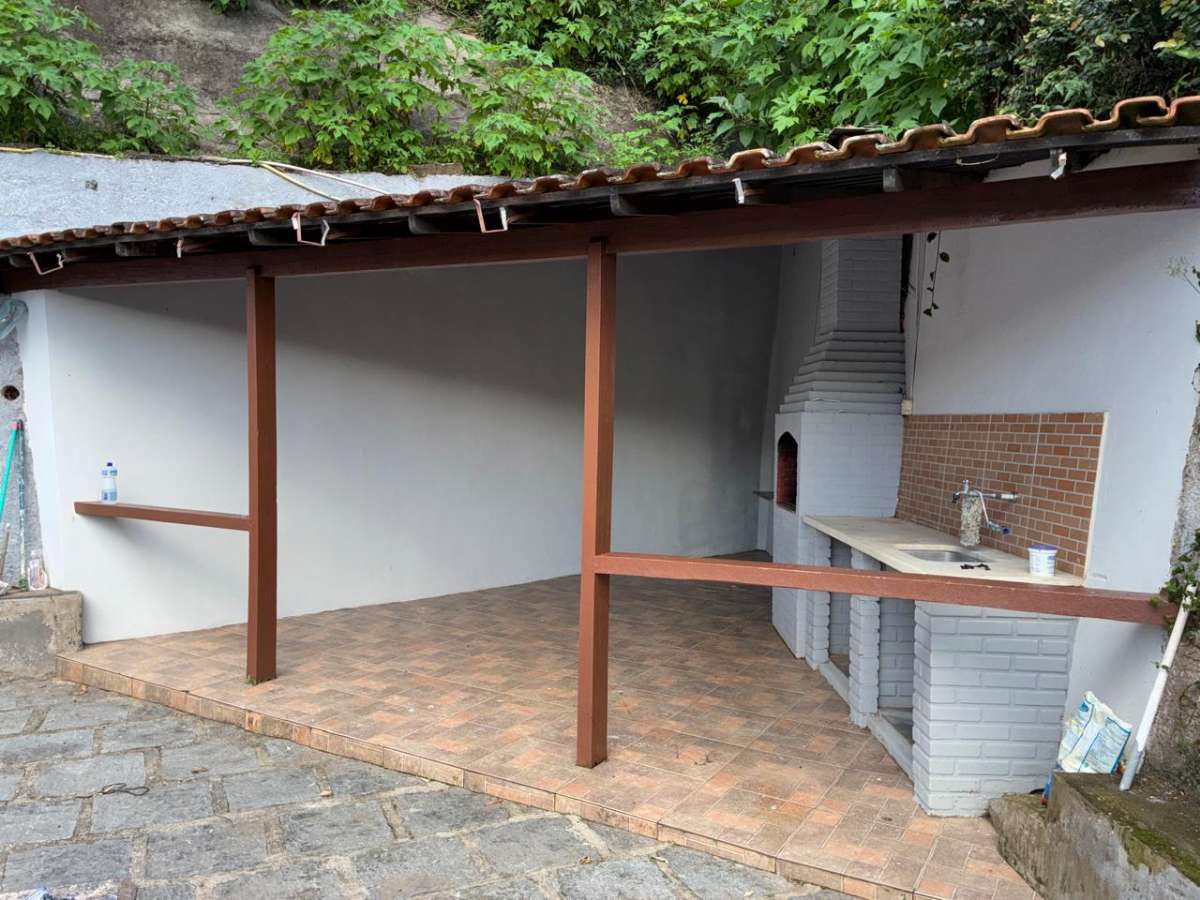 Possui espaço gourmet, área verde de jardim, lareira.